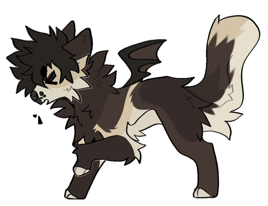 feral fullbody, name, color picker, tail vieweye +paw ref, like's + dislike's, 2 items, and extra info